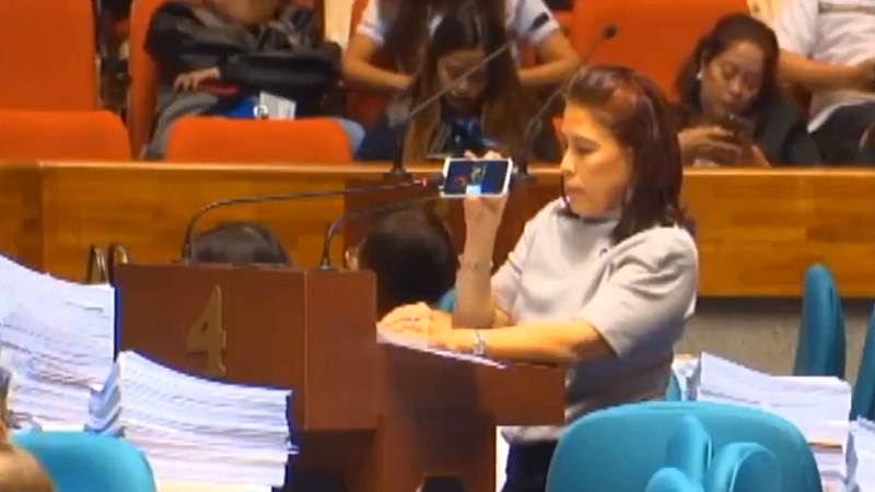 A congresswoman who rejected house bill 8858 plays a part of the song 'greatest love of all' to express her opposition to the controversial measure.