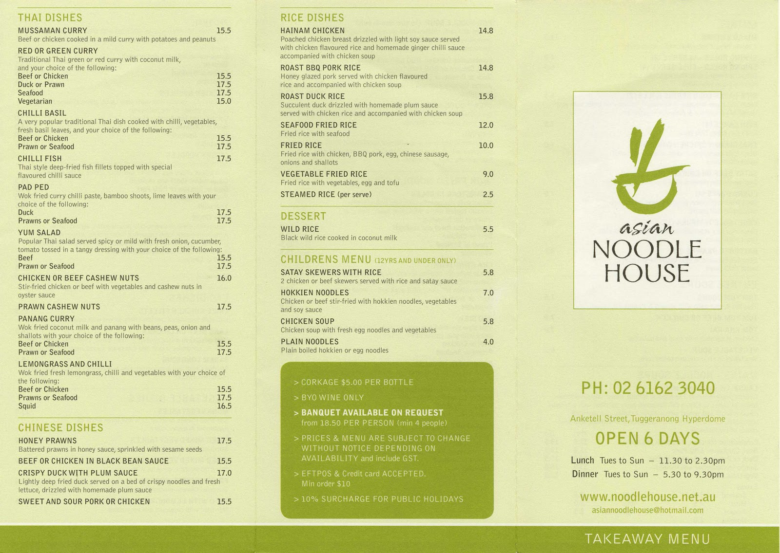 Noodle House Menu