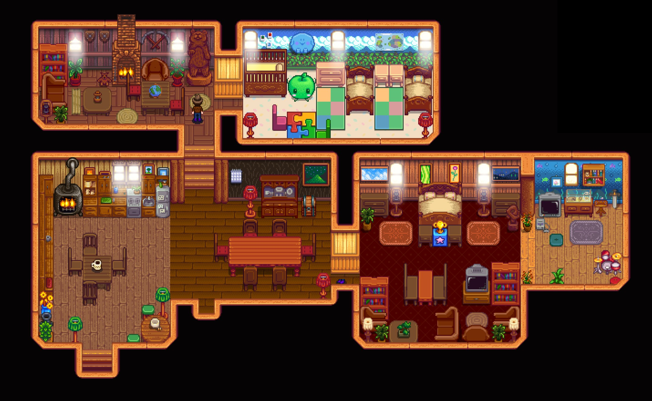 Stardew Valley House Design 43 best stardew valley interior decorating for buildings images. Finished my house decor thought i d share stardewvalley. This excellent tool helps you to plan out your farm easily and make it possible to test different layouts with ease. A mouse takes over the building and opens a shop there selling hats to the player as soon as the first achievement is earned.